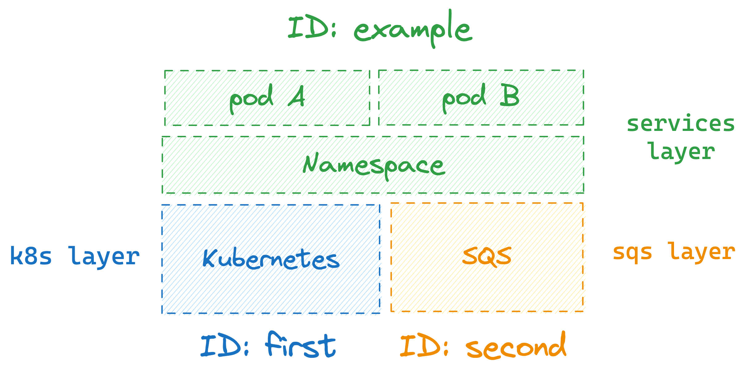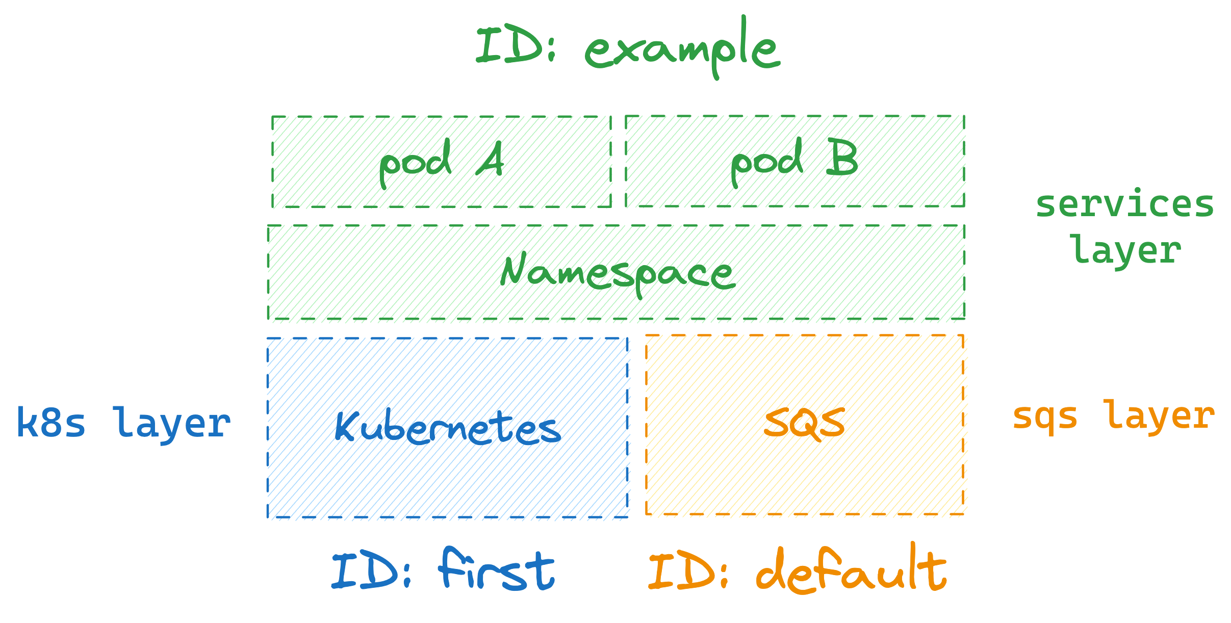 example layer for services on top of the k8s layer instance whose id is first. It will also use the sqs layer instance whose ID is default because an ID was not specified for sqs.