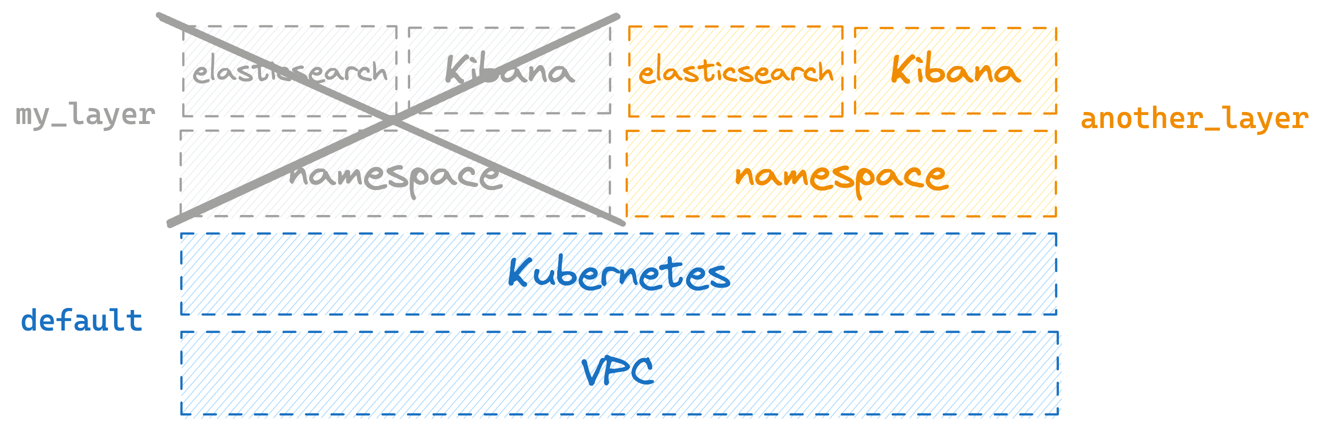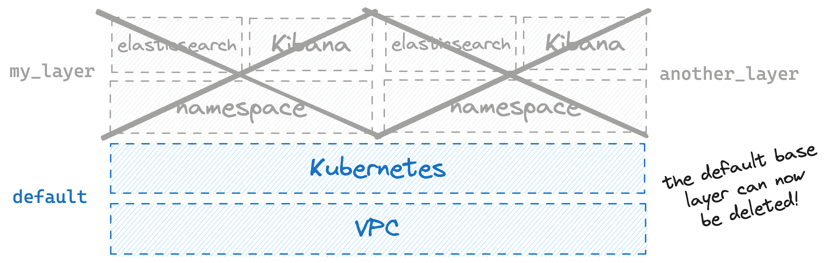 To actually destroy the base layer with ID default, you must first destroy another_layer running layerform kill elastic_stack another_layer.
